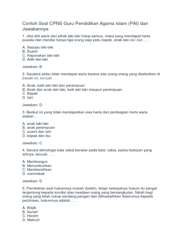 Kumpulan Soal Ilmu Waris : Contoh Soal Pilihan Ganda Mawaris Dan Jawabannya Dapatkan Contoh : Jawaban pertanyaan sekilas tentang hukum acara perdata mnj.. Pilihlah salah satu jawaban yang paling benar di antara huruf : Dalam hadits marfu disebutkan wahai abu hurairah pelajarilah ilmu faroidh ilmu waris dan ajarkanlah karena ilmu tersebut adalah separuh ilmu dan saat ini telah dilupakan ilmu warislah yang akan terangkat pertama kali dari umatku hr ibnu majah ad daruquthni al hakim al baihaqi. Maka perhitungan pembagian warisnya sebagai berikut. Posted by majelisfikih on november 18, 2011. Maka mereka dinamakan dzawil arham.